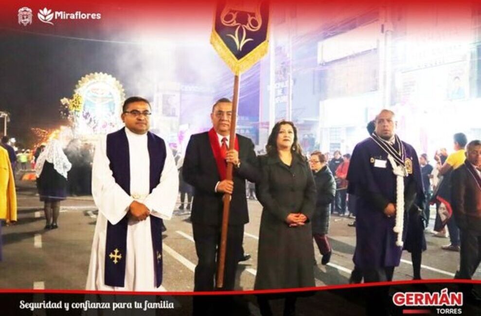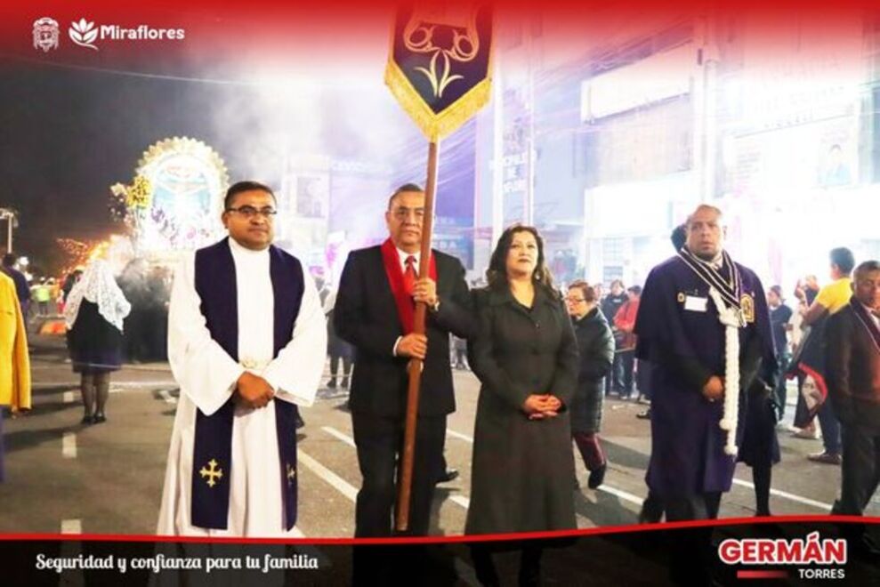 En una emotiva ceremonia, el alcalde Germán Torres, junto a funcionarios y trabajadores de la municipalidad de Miraflores, recibieron a la sagrada imagen del Señor de los Milagros, que recorrió las principales calles del distrito.