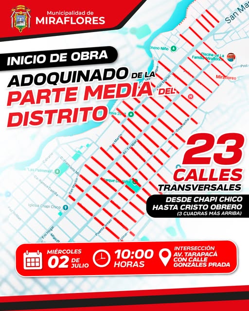 Este miércoles 2 de julio iniciamos las obras en 23 calles transversales, desde Chapi Chico hasta Cristo Obrero (3 cuadras más arriba).